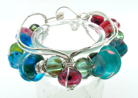 | Silver cuffs with glass beads wrapped in silver frame | Tweet
