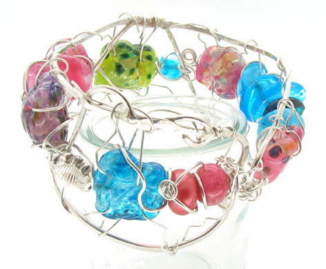 | Silver tiara frame cuff wrapped with glass beads all made by artist £98 | |